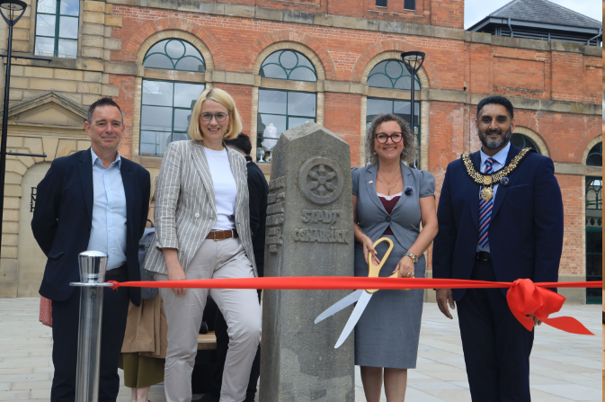 The reopening of Osnabrück Square was marked with a ribbon-cutting ceremony attended by Derby City Council leader Councillor Nadine Peatfield, the Mayor of Derby, Councillor Ajit Atwal, Oberbürgermeisterin Katharina Pötter and a delegation from Osnabrück in Germany, which Derby has been twinned with for 49 years.