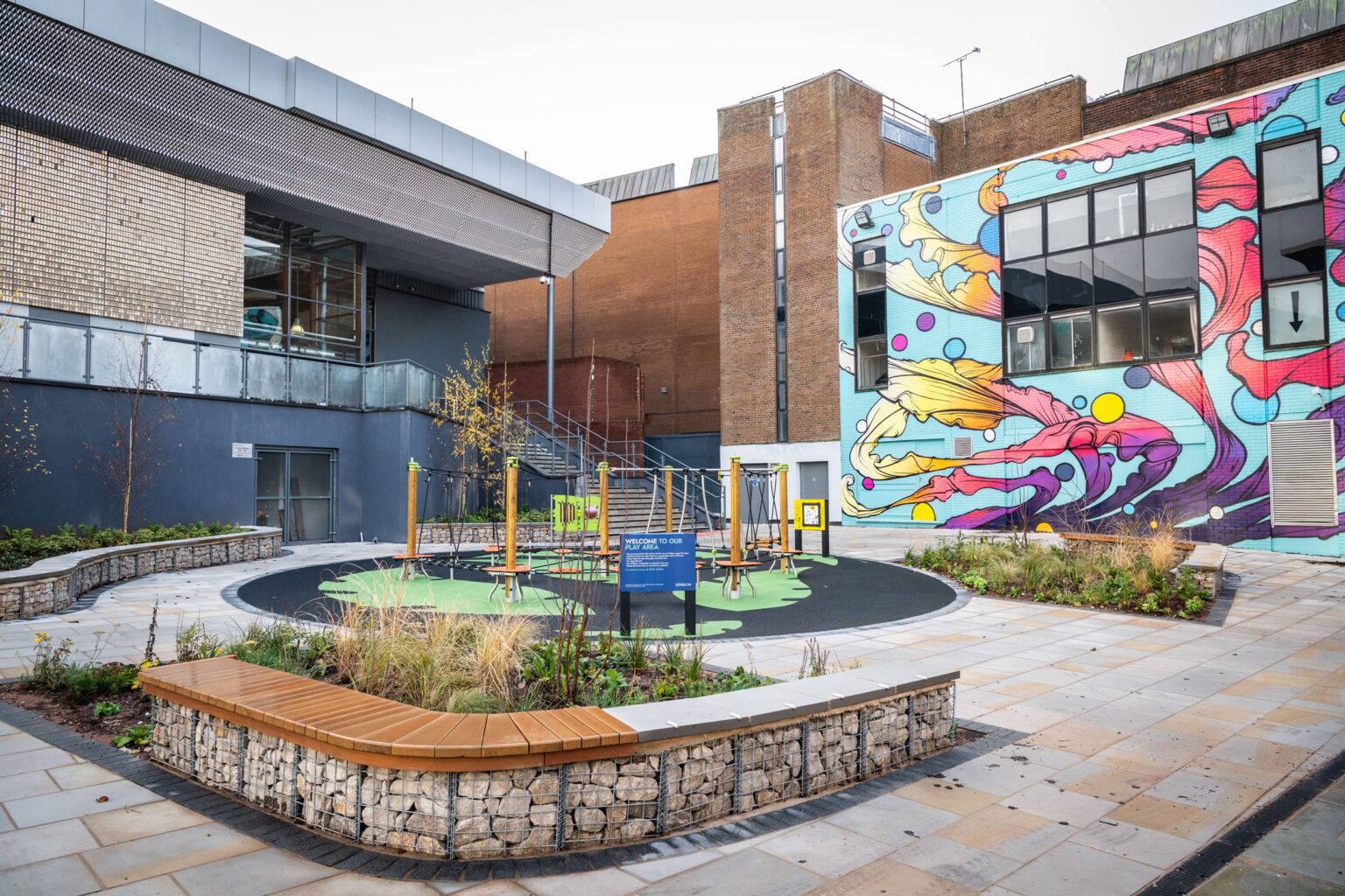 The newly transformed area features a new façade and an urban garden, as well as a vibrant mural from local music and arts development organisation, Baby People.